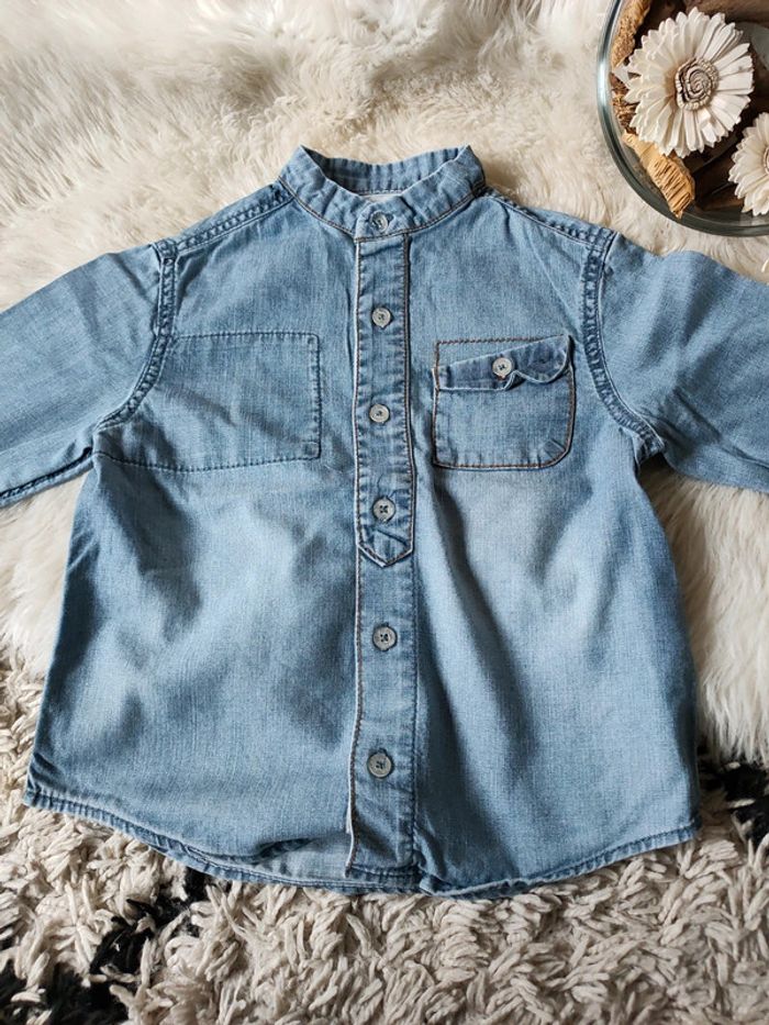 En excellent état chemise Okaïdi 4 ans garçon Très stylé Un seul défaut le bouton du col est cassé mais il y a un bouton de rechange en bas de la chemise voir photos #T4ans_betty5920