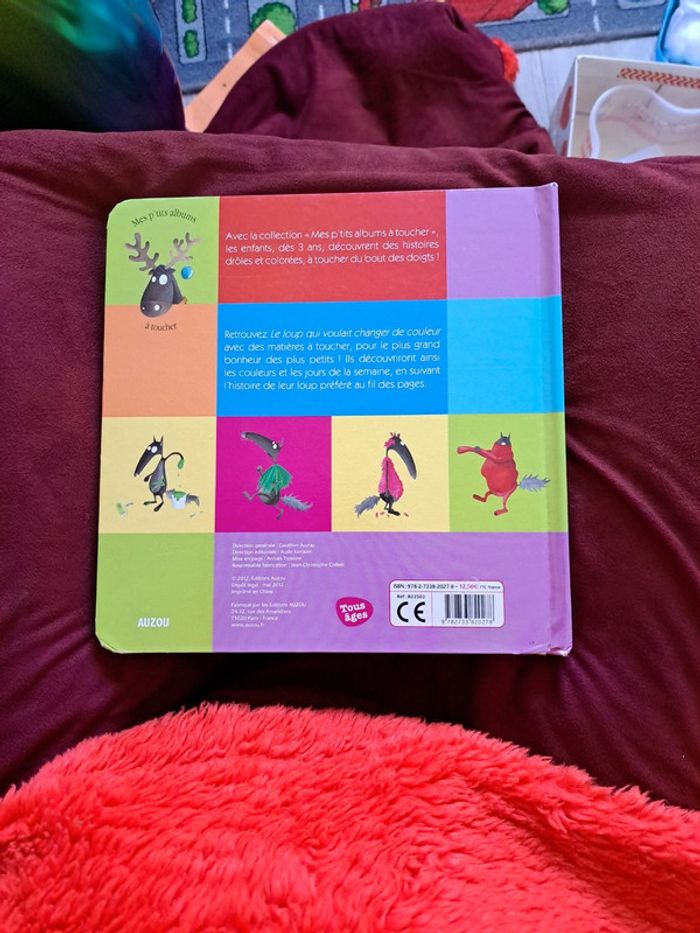 Livre tactile avec des élément à toucher Couverture en haut à gauche scotché