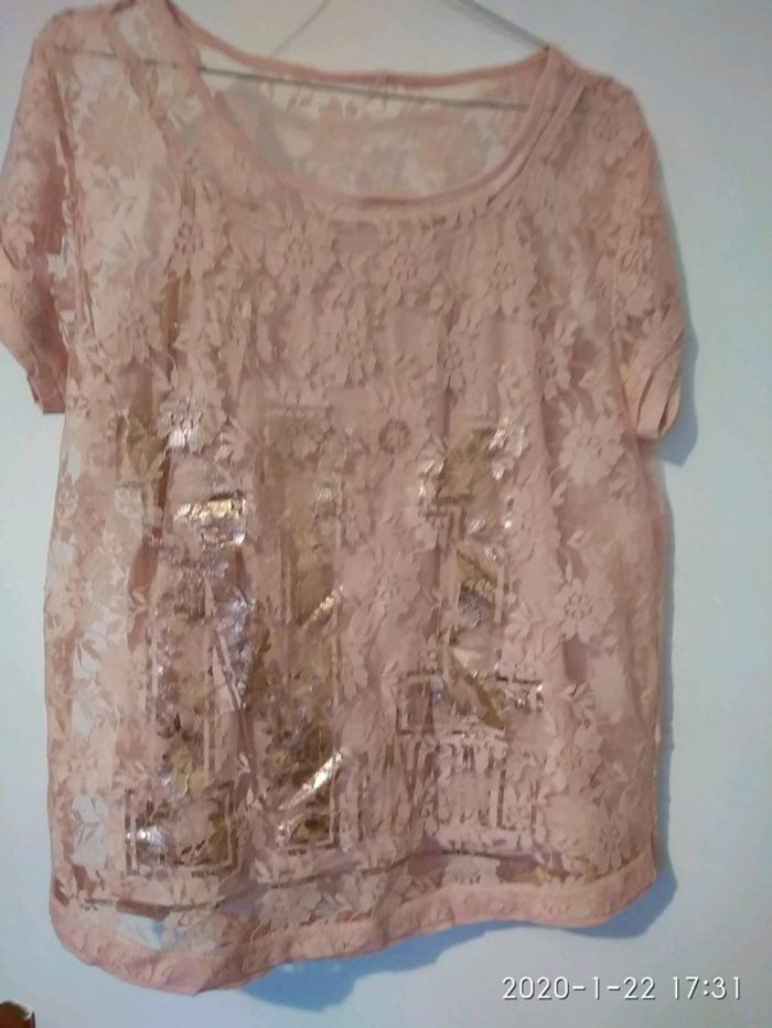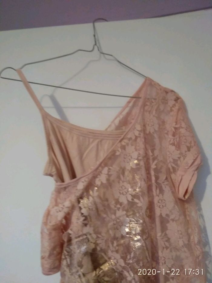 Ensemble tunique dentelle avec son débardeur assorti delà même couleur La couleur est plutôt rose pâle.