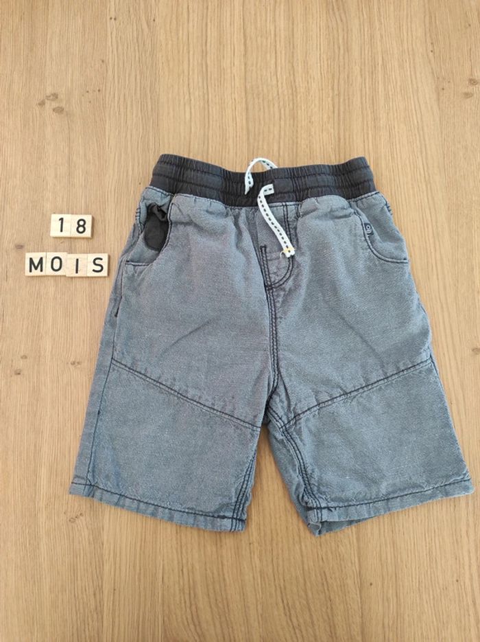 Short en coton et lin, gris, en très bon état. Marque Obaïbi, taille 18 mois.