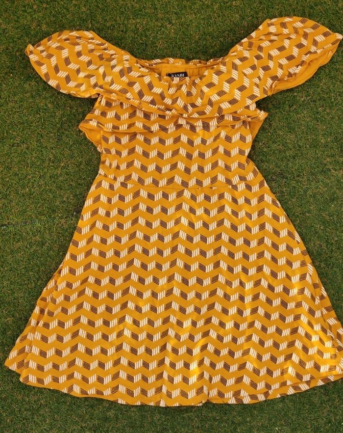 Robe a motifs de couleur moutarde de chez kiabi. Avec épaules dénudées ou non. Taille 4 ans Peu porter