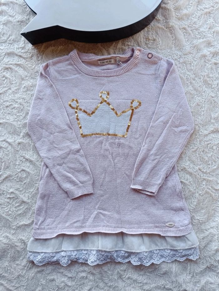 Robe pull manches longues avec laine Fille 2 ans couronne Ikks - photo numéro 1