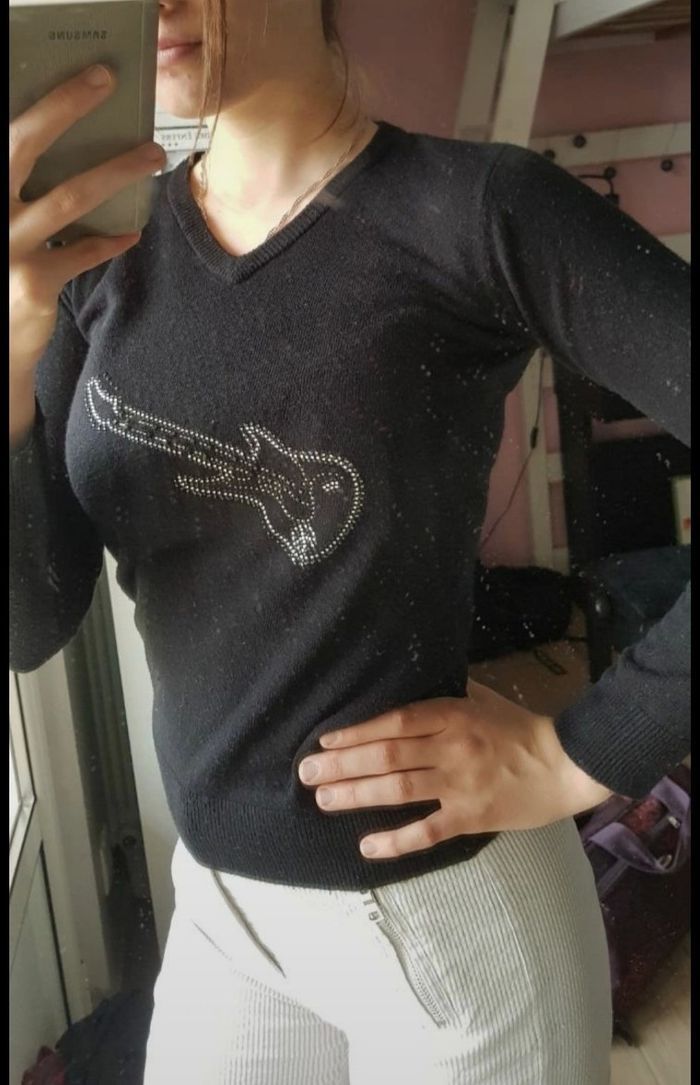 📌Si c'est votre première commande utiliser le code parrainage dans mon profil vous aurez une réduction 📌Pull motif guitare strass 12ans Tripley fille #fille12_mondressing11_bv