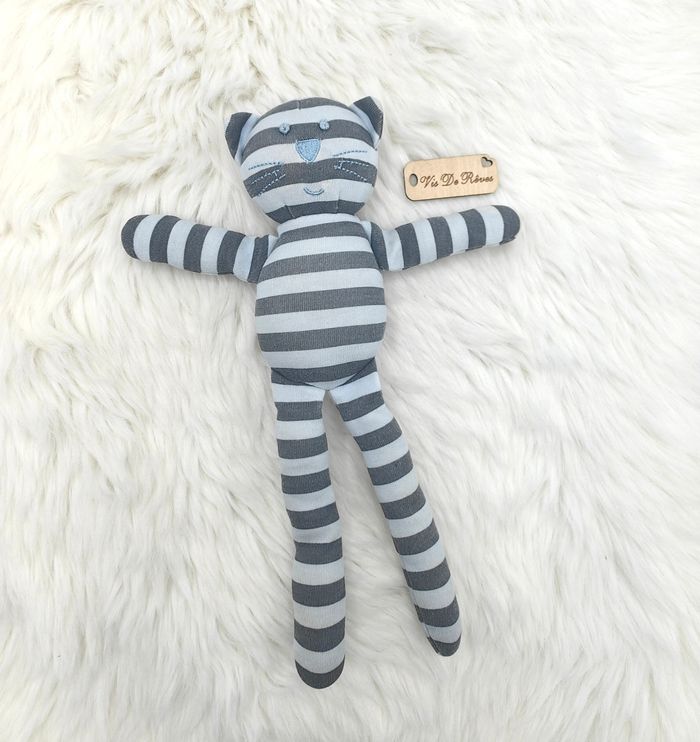Doudou peluche Chat Rayé Gris Bleu Bout'chou