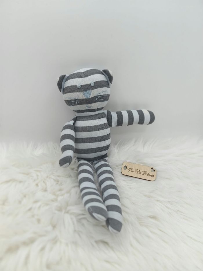 Doudou peluche Chat Rayé Gris Bleu Bout'chou - photo numéro 2