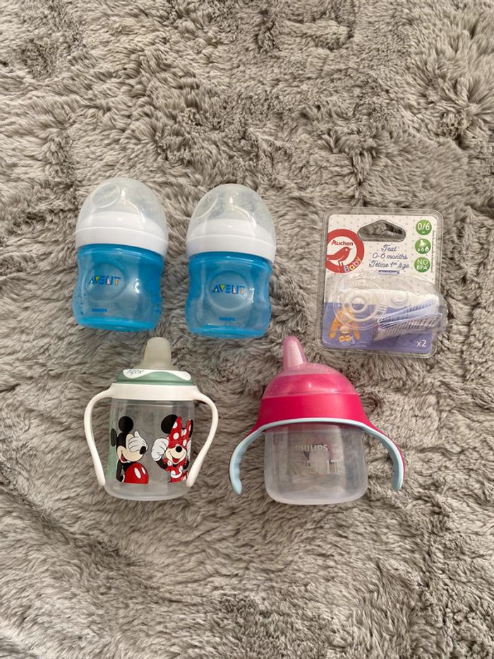 Lot de biberons "Avent" x2, gourdes x2, tétines de biberons. Les biberons et gourdes ont étaient utilisés. Les deux tétines sont neuves mais l'emballage est ouvert. Possible de ne pas prendre tout le lot, seulement ce qui vous intéresse. Proposez moi un prix. 🌿 N’hésitez pas à consulter mes autres annonces de mon dressing trié par # et par catégories (dans à propos) ♻️👗 Idéal pour faire des lots ! (Remise sur les lots 🤗) Je vend également différents vêtements : ✿ Fille et garçon 0 ➡️ 16 ans (collection actuelle) ✿ Femme taille XS ➡️ XXL ✿ Homme taille M/L. ✿ Déguisements, Disney, ski, jouets.. ✿ Création de fiche Montessori.. 🌈 🚭 Maison non fumeur ! Trouve ton bonheur ⬇️ #laura_vznaccessoirebebe