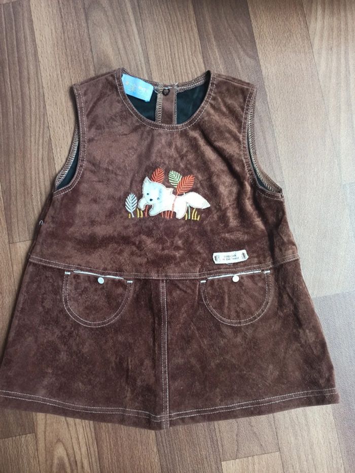 P'tite robe vintage marron en effet daim En bon état Taille 12 mois Marque de bon matin