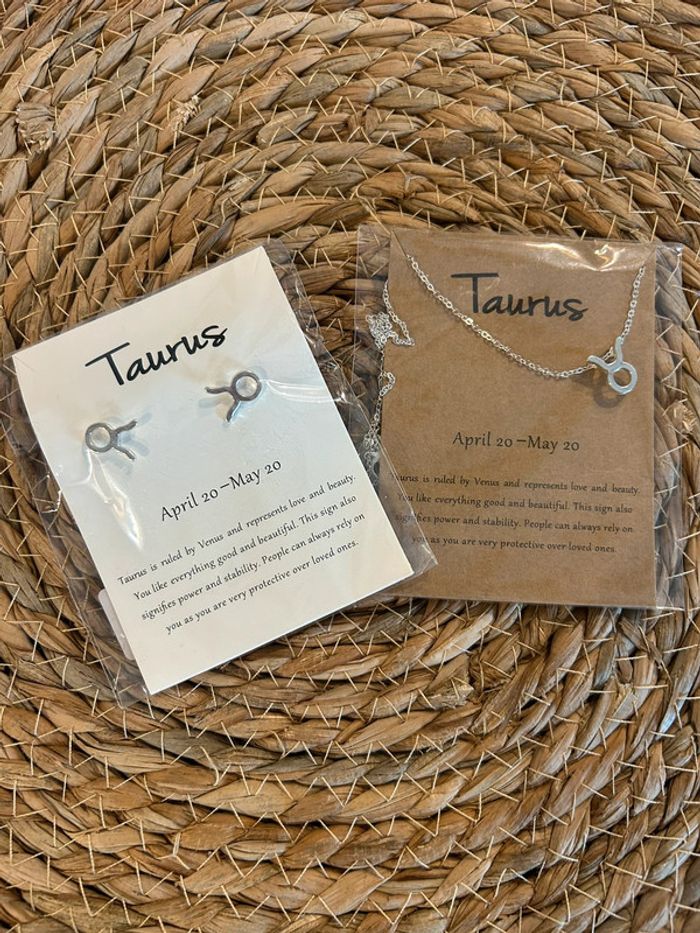 Signe astro Taureau D’autres modèles disponibles. Neufs avec étiquette Collier + boucles d’oreilles.