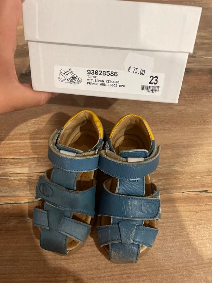 Sandales de la marque Babybotte. Bon état , quelques rayures sur le devant. Collection 2022. Tout cuir. Prix d’achat : 75€ Réglable devant pied et cheville