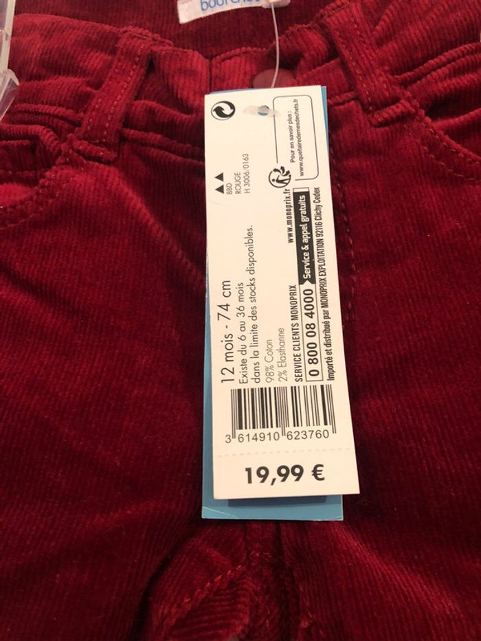 Pantalon rouge en 12 mois. Neuf avec étiquette Marque Bout’chou 74cm #alice1704vetementfille #bout’chou #12mois #boutchou12mois
