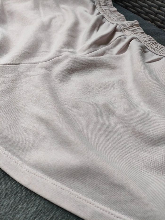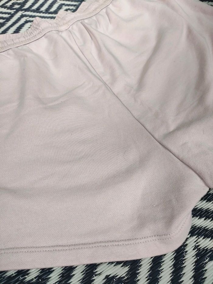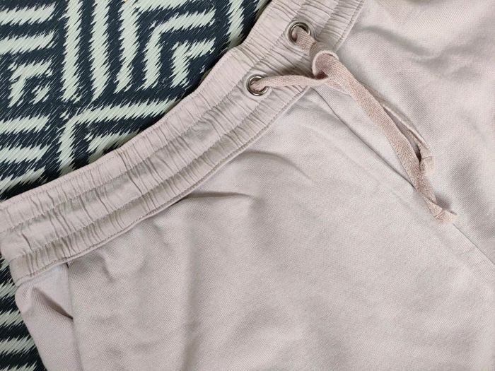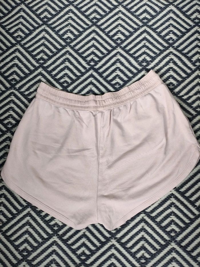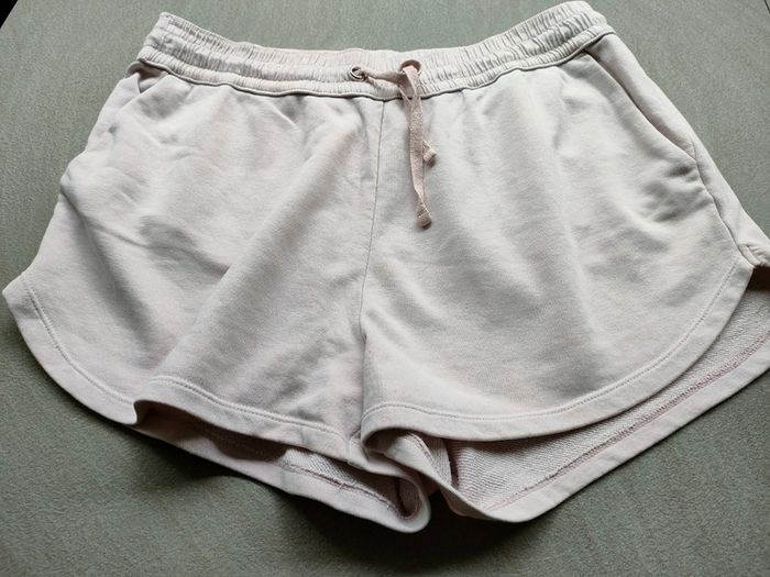 Short rose (vieux rose un peu) avec taille élastique et lien pour resserrer. Deux poches. Marque : H&M Taille : L Matière : 80 % coton et 20 % polyester