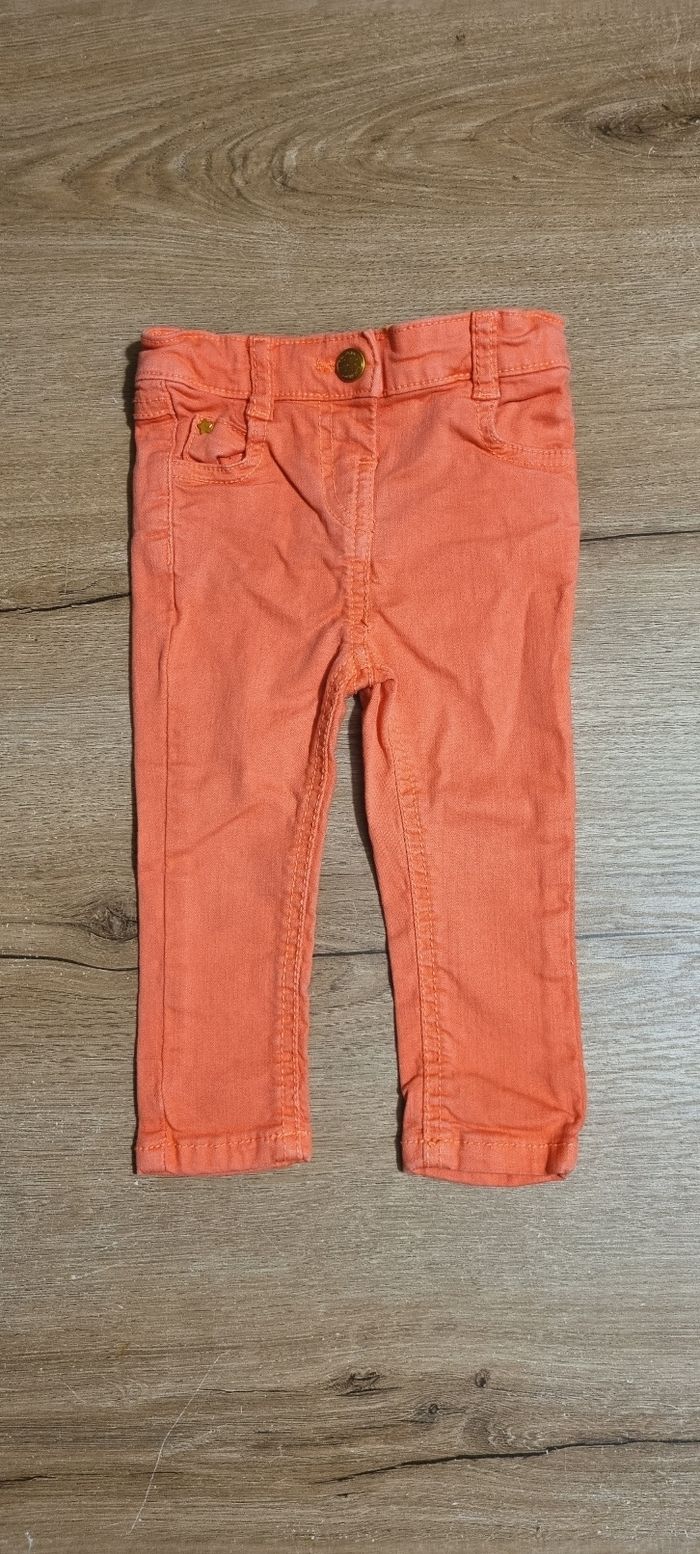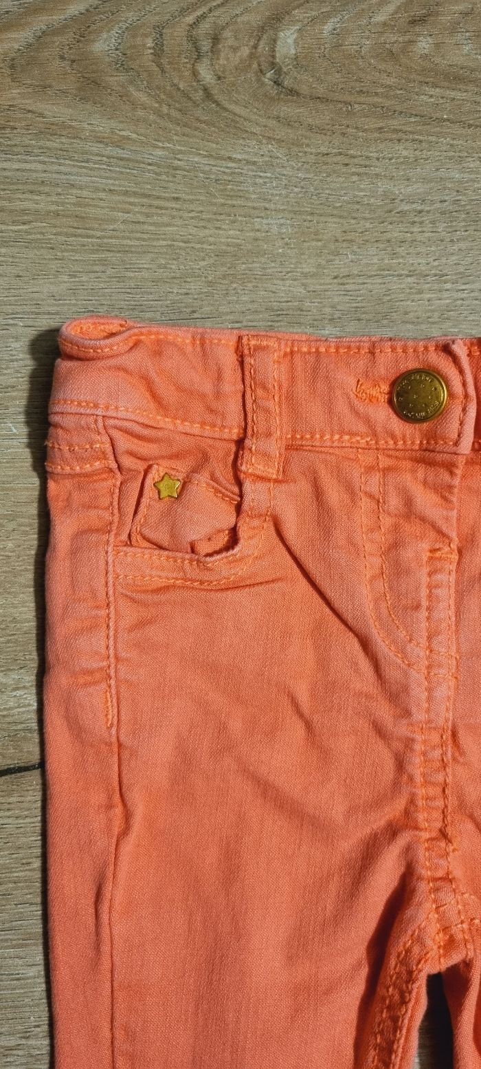 Jeans slim couleur corail Ajustable à la taille par élastiques Tape à l'œil taille 9 mois Parfait état