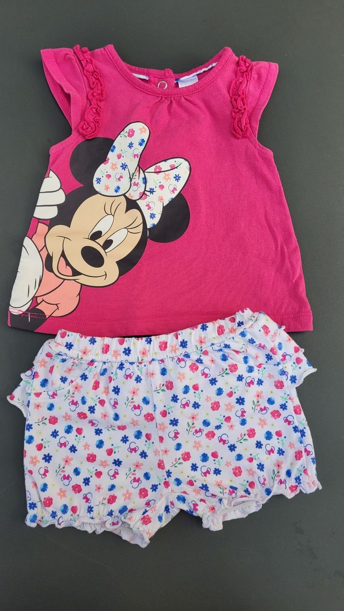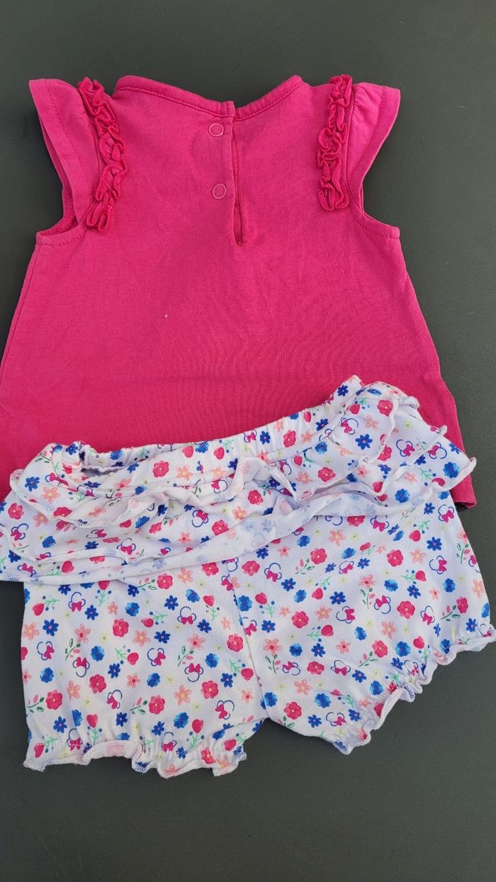 Ensemble été Minnie Disney 62cm haut fushia & short souple assorti avec froufrous à l'arrière.