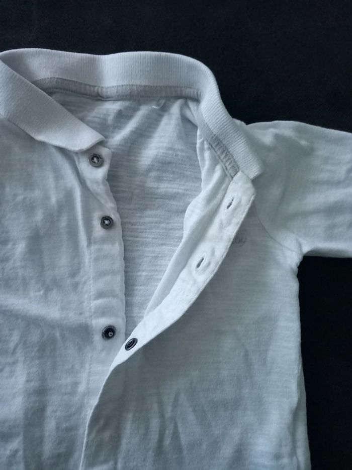 En excellent état Couleur blanc Taille 6 mois Les 2 premiers boutons sont des vrais, les autres des boutons-pression