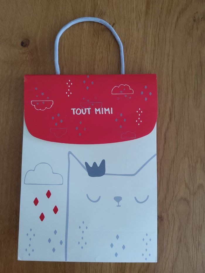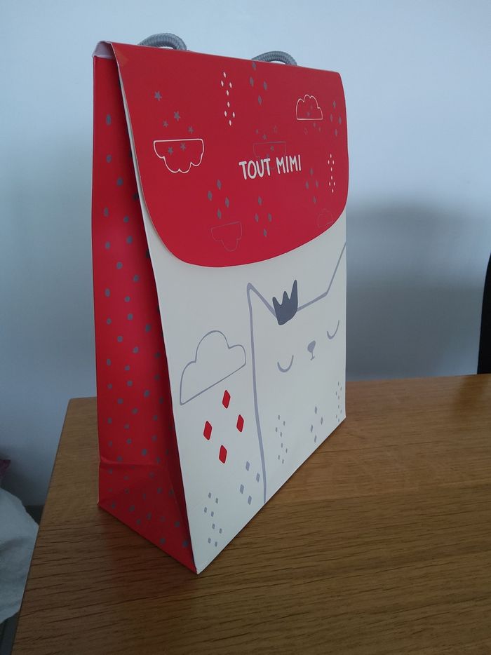 Sac cadeau rouge et crème, Sucre d’Orge, hauteur 27,5cm, fond 9cm, largeur 20cm #fifi4935accessoiresbebe