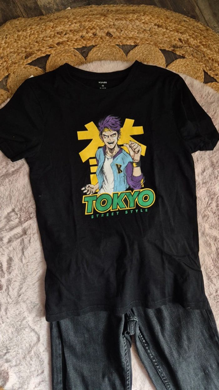 Ensemble comprenant un tee shirt manches courtes noir imprimé manga et un jeans slim noir ajustable a la taille par élastique. Ensemble simple et efficace. Passe partout. Taille XS de chez Kiabi. Tokyo style #kiabi #garconxs #dressingdetristanxs