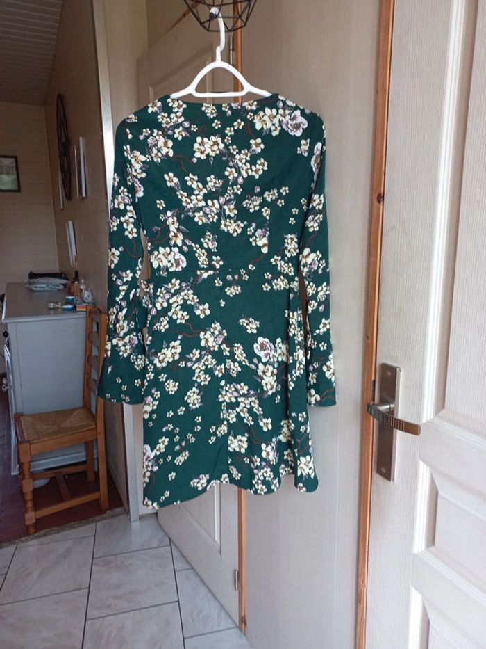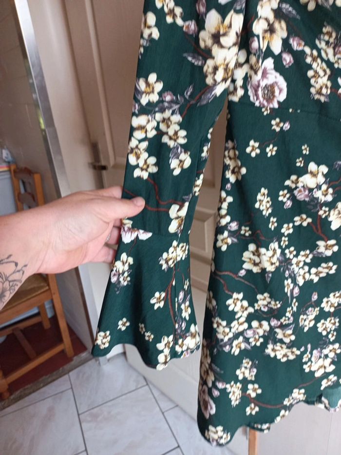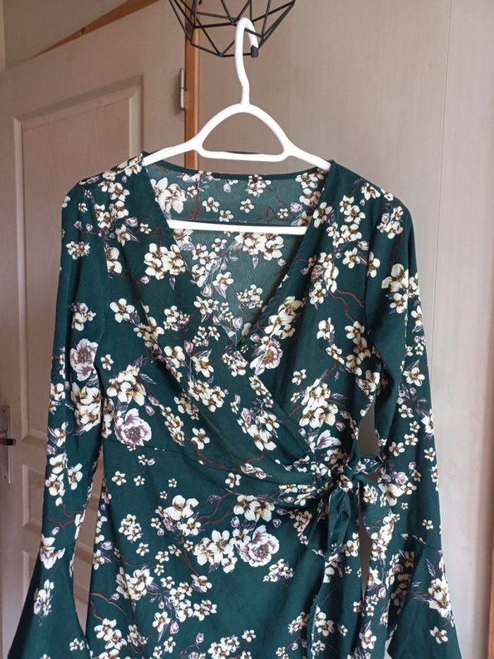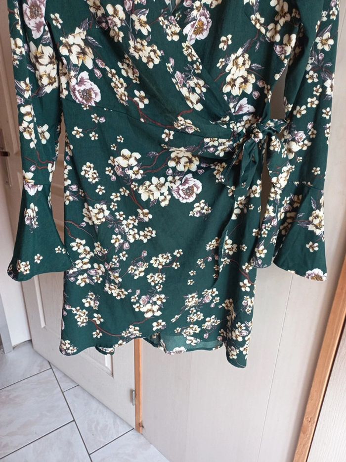 Robe portefeuille Verte imprimée fleurs Taille 38 Manches longues