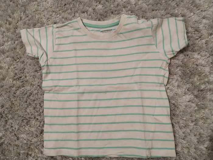 T-shirt Blanc rayé vert Vertbaudet 36 mois 94 cm Pressions épaule pour passage tête
