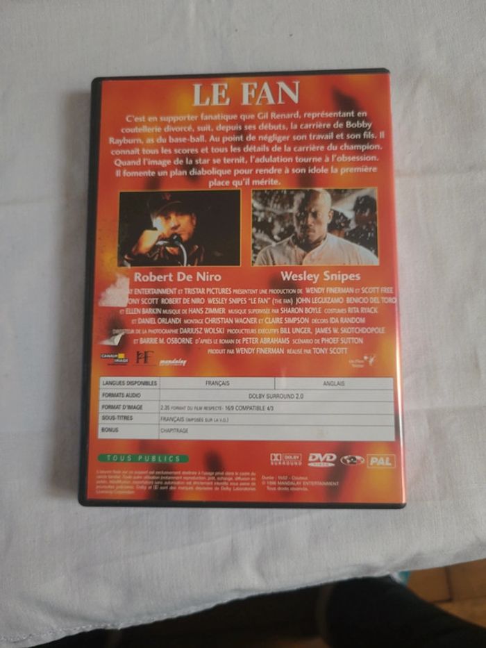 ⬇️mes autres annonces de dvd, blu ray 👉 #cg89dvd 😁 réductions activées des 2 articles ! Dvd le fan - bon état De Tony Scott Avec Robert De Niro, Wesley Snipes, Ellen Barkin Divorcé, Gil Renard vient de perdre son emploi de représentant en couteaux de chasse ainsi que la garde de son fils. Cet homme désorienté ne vit plus que pour sa passion : le base-ball. Ce sport est toute sa vie. Gil est un vrai supporter. Depuis ses débuts, il suit la carrière de Bobby Rayburn, un joueur récemment transféré chez les Giants de San Francisco, son club favori, pour la somme faramineuse de quarante millions de dollars. Il lui voue un véritable culte. Mais quand son idole commence à accumuler les mauvais résultats en championnat, Gil se met en tête de l'aider à retrouver son rang. Ce fan de la première heure décide même d'employer les grands moyens.