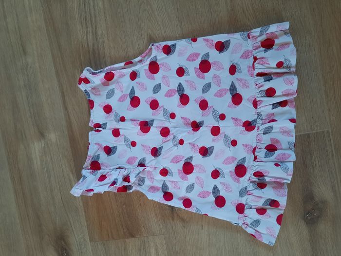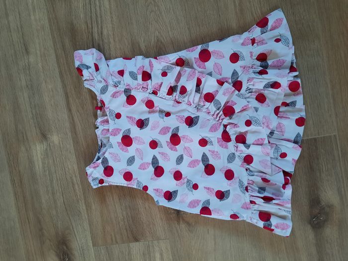 sans manches 100% coton blanche à imprimés feuilles rose/noir volants devant et en bas fermeture éclair au dos très bon état #annabelle_60_filledixans