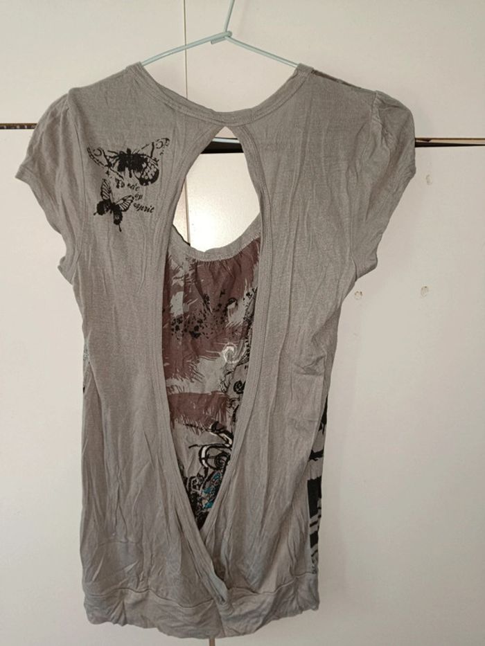 Tee shirt ouvert à l'arrière Strass sur le devant Taille S Un tout petit trou sur la manche (dernière photo) #emiliestomvetement36