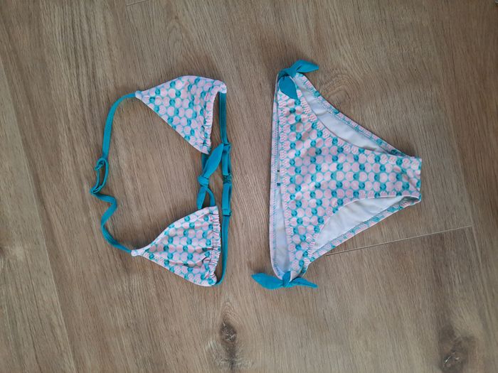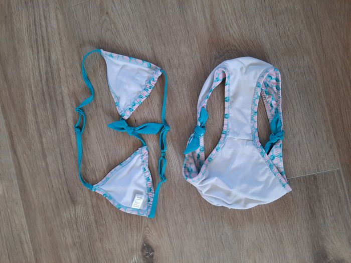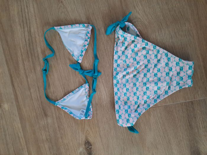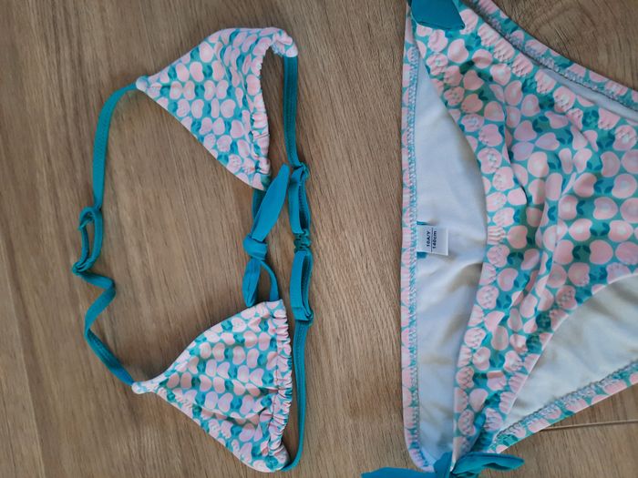 Maillot de bain 2 pièces à imprimés "pommes" vert et corail Okaïdi 10 ans - photo numéro 2