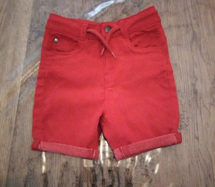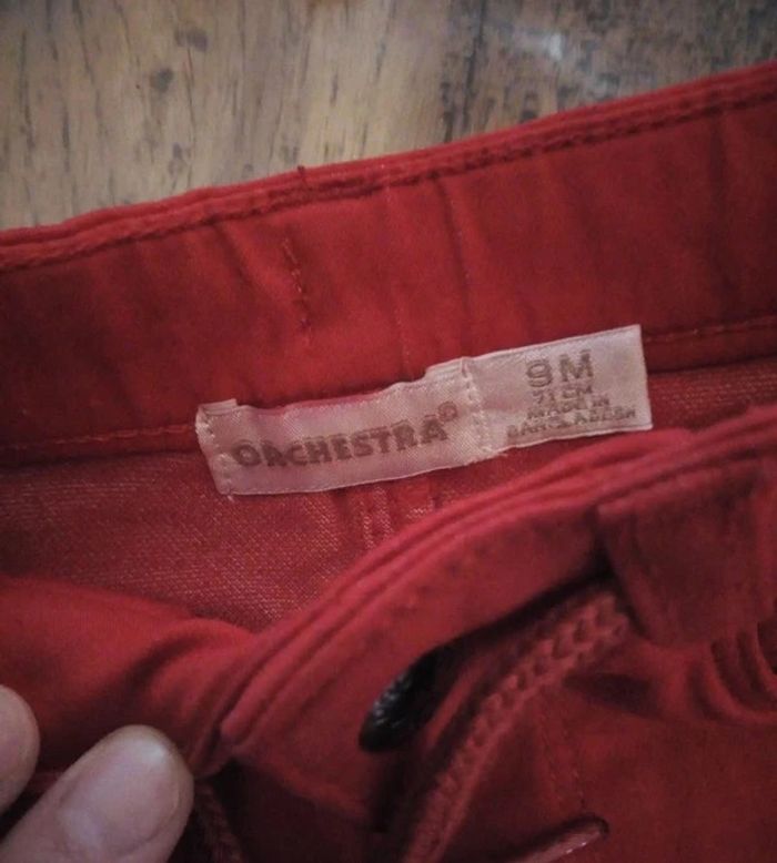 #stef62180_neufmis Vend un short type jean de couleur rouge Marque orchestra Taille 9 mois Très peu porté Fermeture pression #été9mois #orchestra9mois