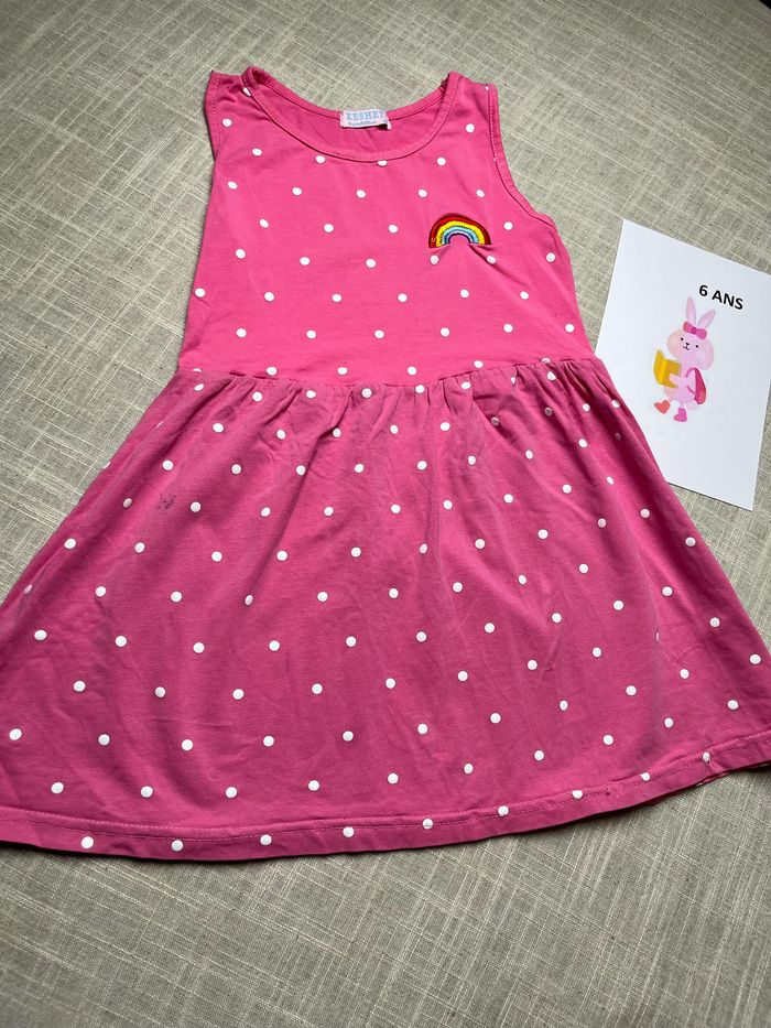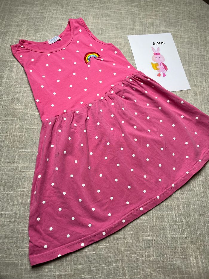 Jolie robe rose à pois blancs Taille 6 ans Présence de 2 taches qui partiront peut être avec du détachant (photo). Groupez vos achats pour profiter des remises activées sur les lots et réduire vos frais de port #chrisbc17fille6ans