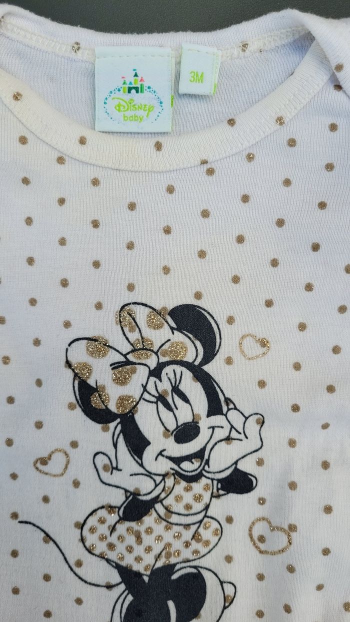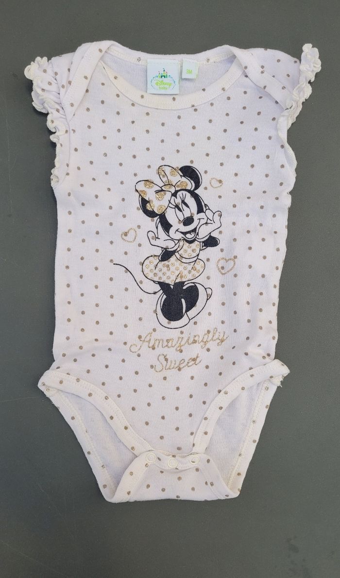 Body blanc à pois dorés manches courtes disney Minnie 3mois