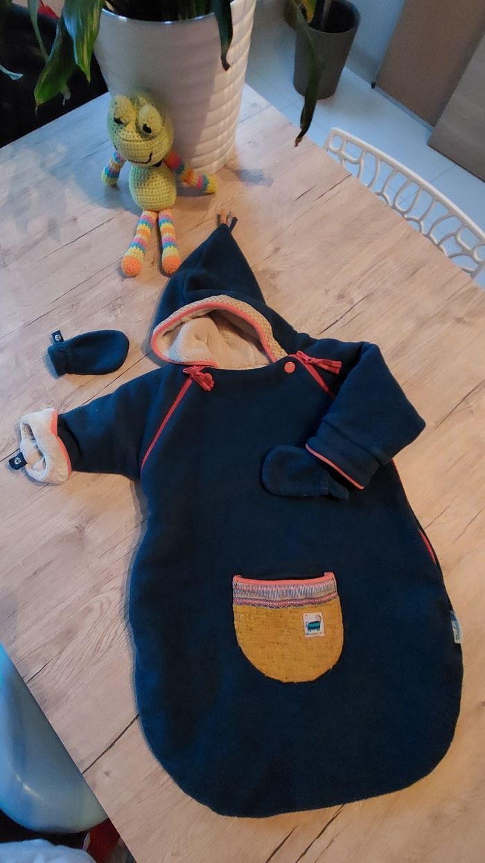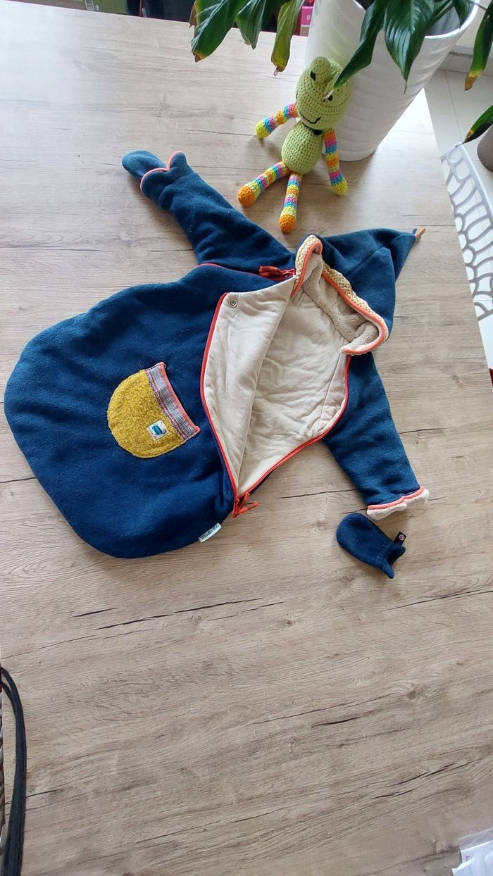 Combi pilote 3-6 mois avec ouverture arrière pour passer bloc ceinture et garder bébé au chaud dans la voiture. Moufles amovibles qui se fixe par bouton pression En excellent état car peu servie Vêtements lavés et mis dans caisse plastique Je prends soin des vêtements, n'hésitez pas à consulter mon dressing pour d'autres articles 😉