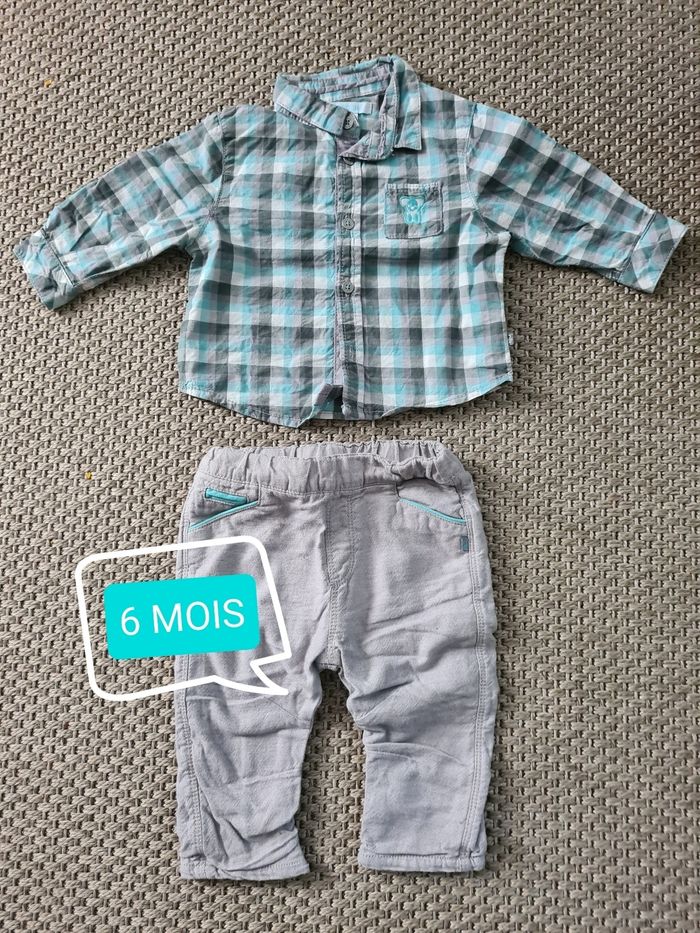Ensemble chemise à carreaux et pantalon épais - 6 mois - photo numéro 1