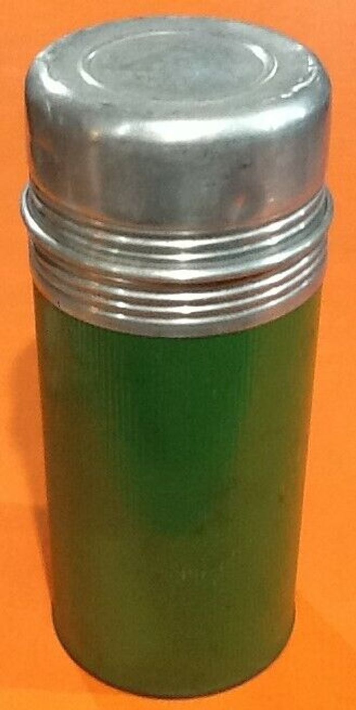 (article vendu en l' état, état d' usage voir toutes les photos) Années 1950 Thermos (grand format) " La Triomphe " ETS Thermos Peters Paris Hauteur : 265mm Diamètre : 110mm Contenance : 1 litre Poids : 840grs