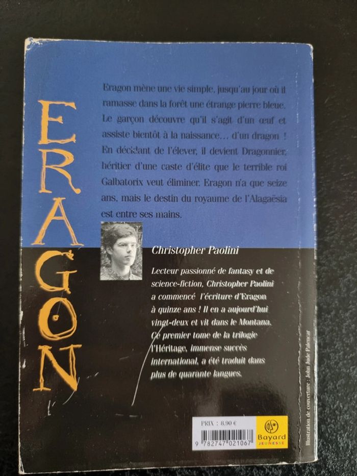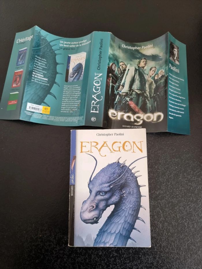 Eragon de Christopher Paolini Bayard Jeunesse Format poche Livre avec la couverture de sa première publication, avec une jaquette reprenant l'affiche du film