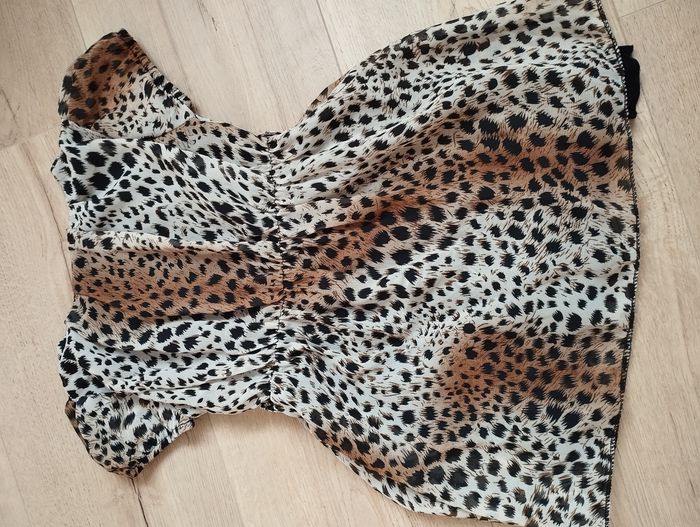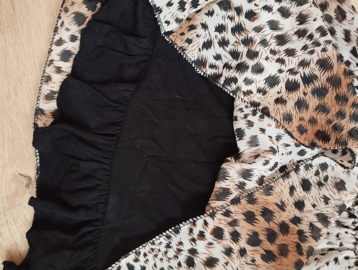 Robe texture voiles+ doublure noir beige et motifs noir et marron