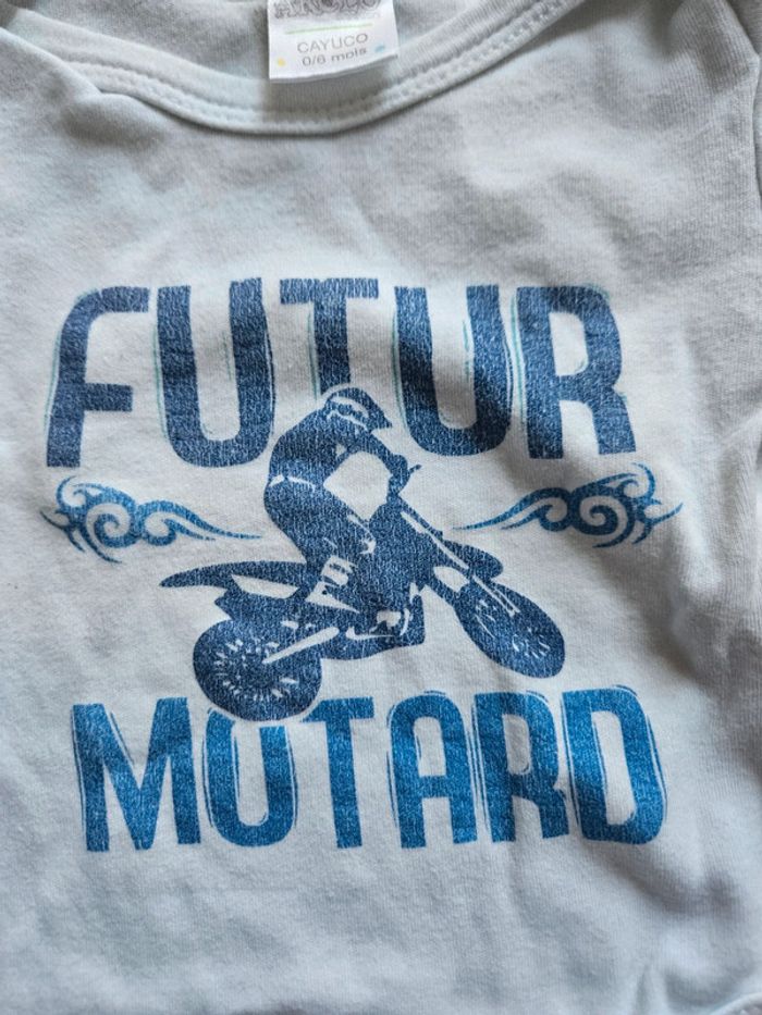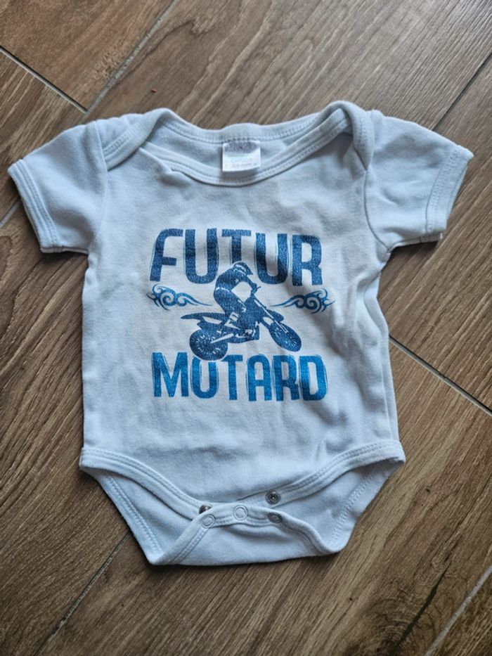 Body bébé futur motard Taille 0-6 mois Bon état logo passe voir photo