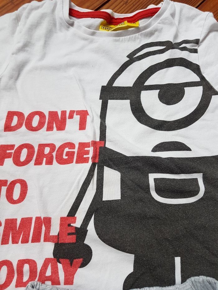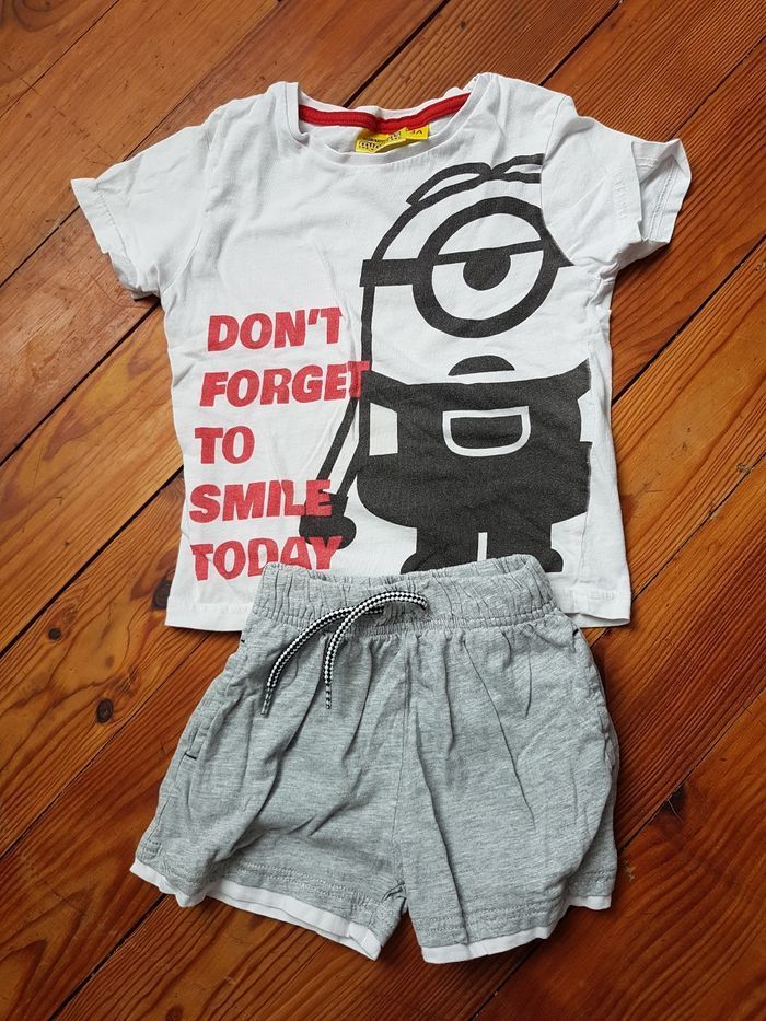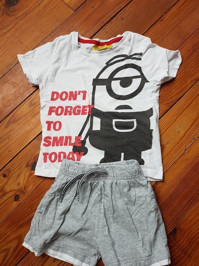 Pyjama à manches courtes et short. Il y a une petite tâche ( dernière image) par sûrement au laçage.