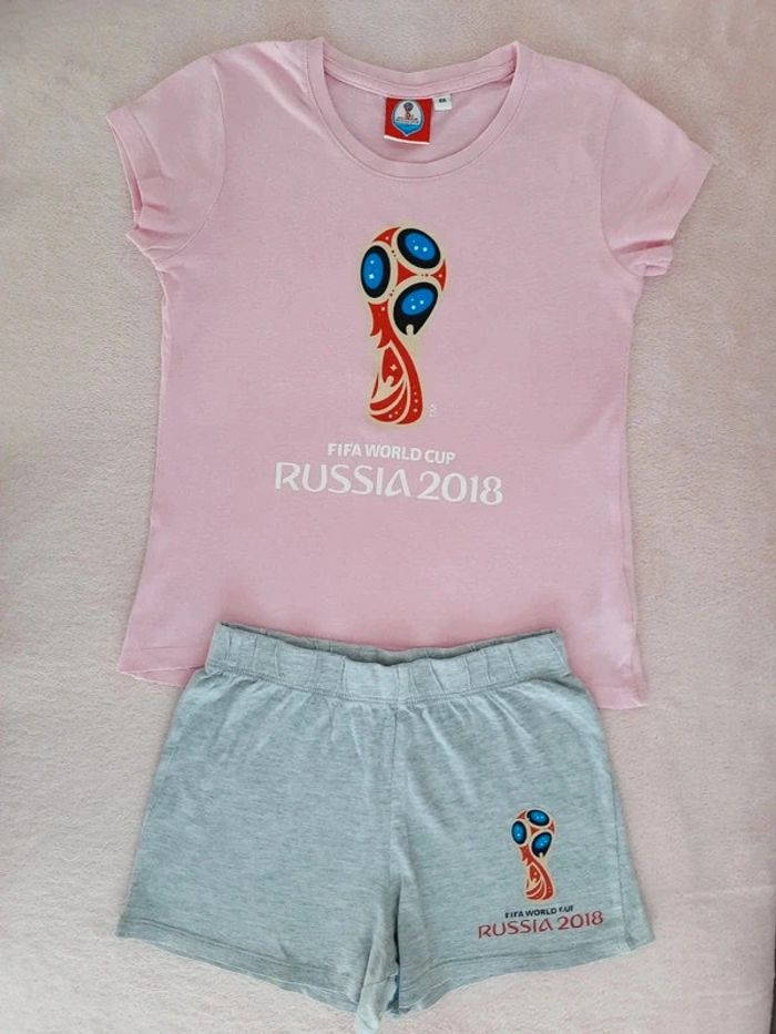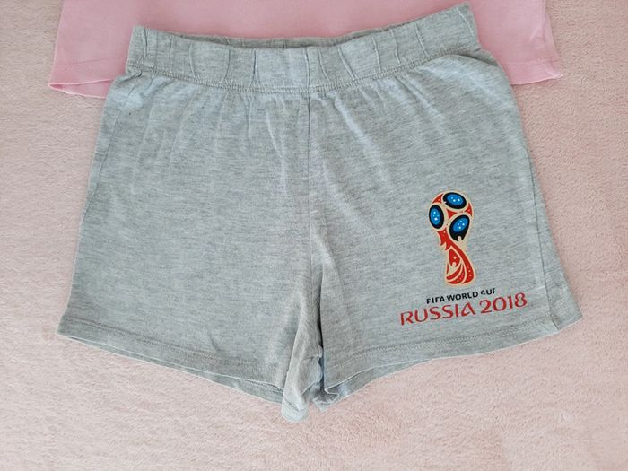 Pyjama 2 pièces pyjashort 8 ans Fifa World Cup Haut à manches courtes rose clair avec coupe du monde de Russie avec coupe du monde 100% coton Très bon état #adelaide7624vetementsfille8ans Bas short gris clair