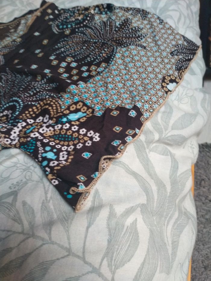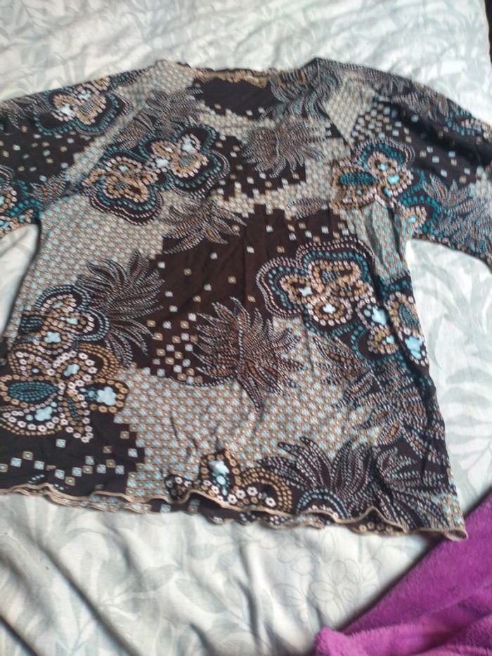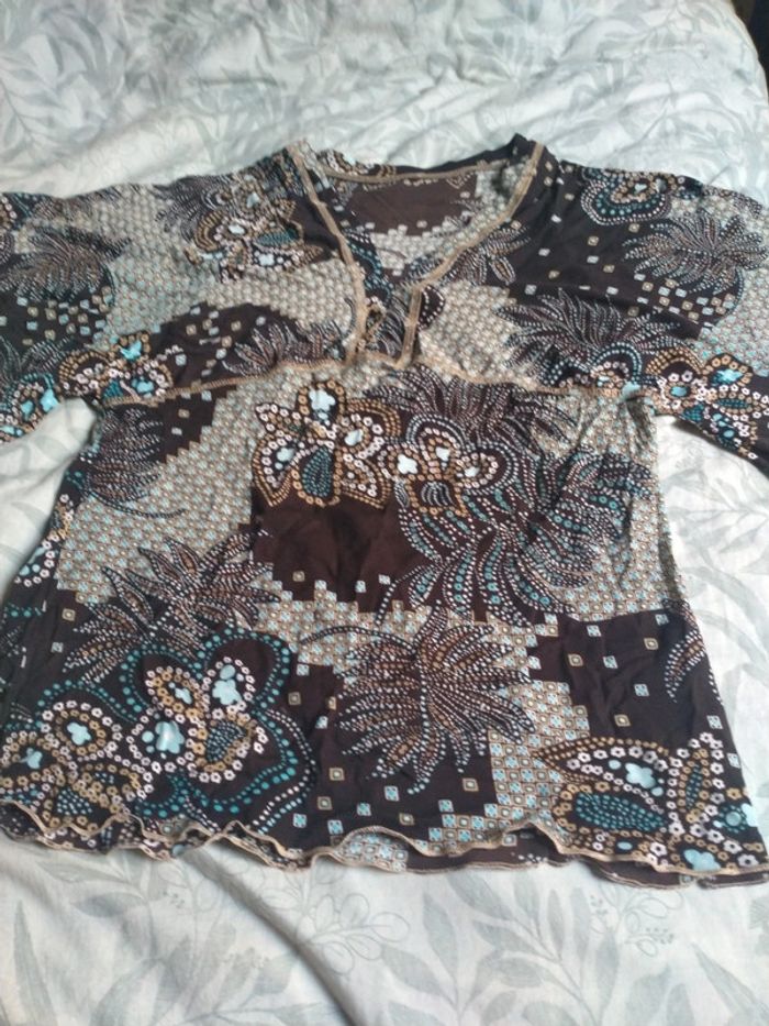 Peut porté, très bon état. Matière élastique, manches amples. Je ne connais la marque car plus d'étiquettes...