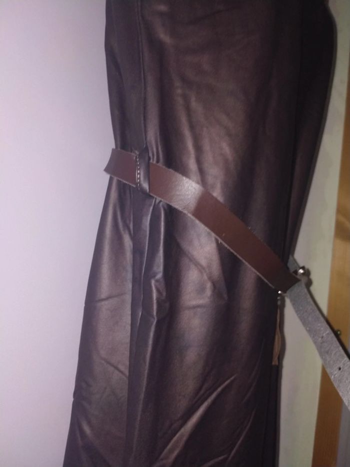 Neuf, jamais porté. Très bon état, vendu avec la ceinture (tissu aspects similicuir). Couleur mélange de marron et aubergine, matière élastique.