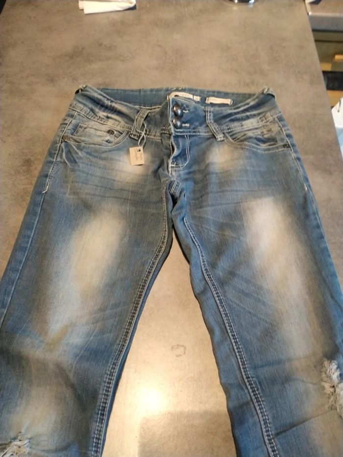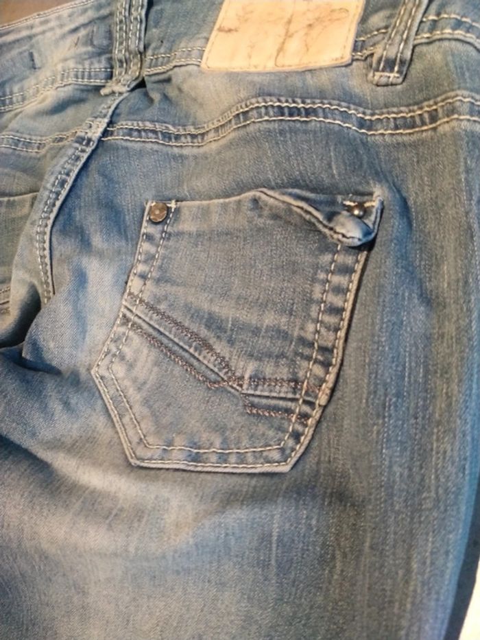 Porté, très bon état (manque un clou sur poche arrière) voir photos, taille basse.