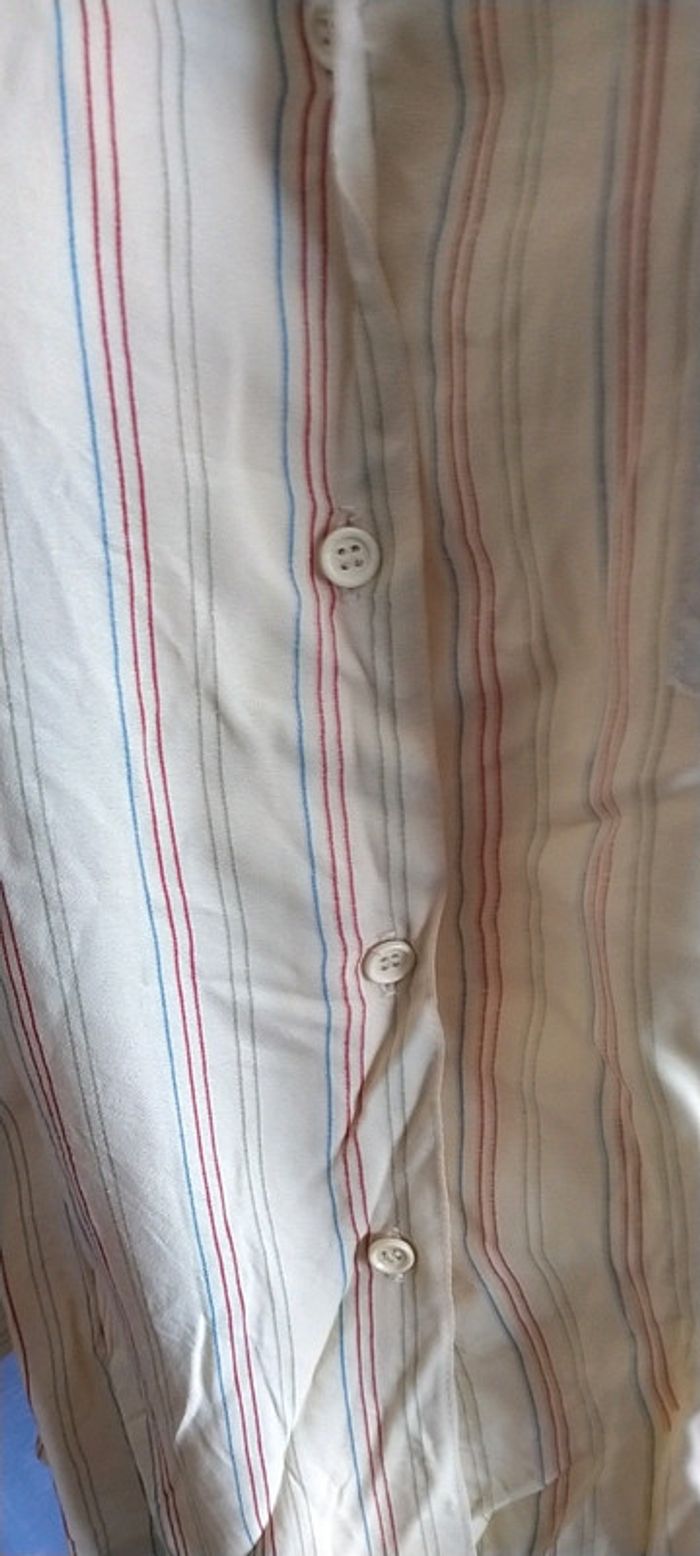 Porter, vêtement en très bon état pour l'époque. Jaune rayé rouge, vert et bleu.