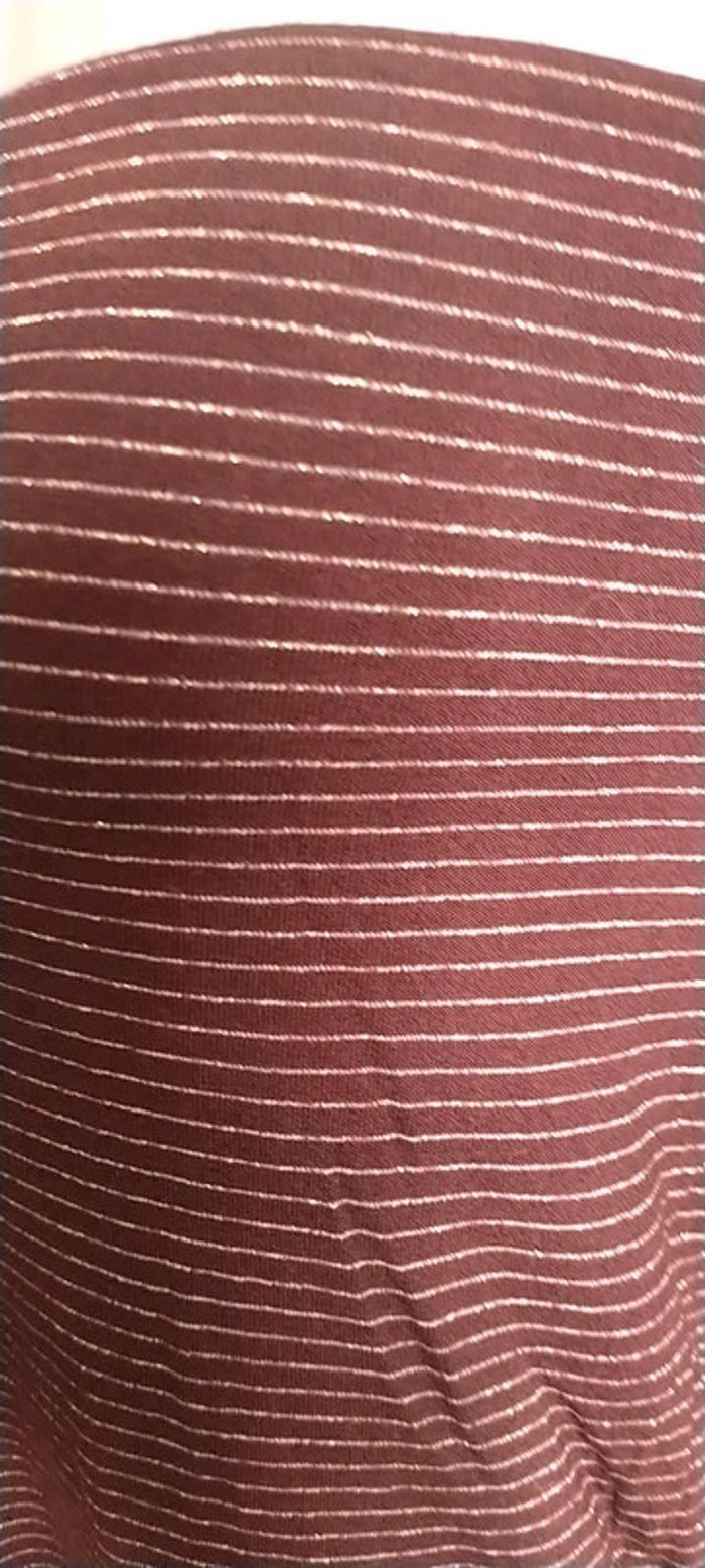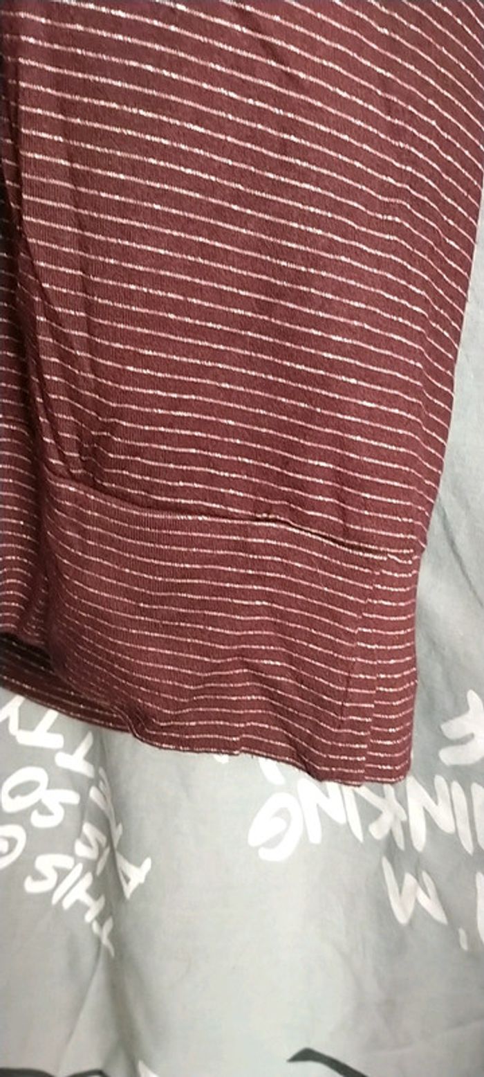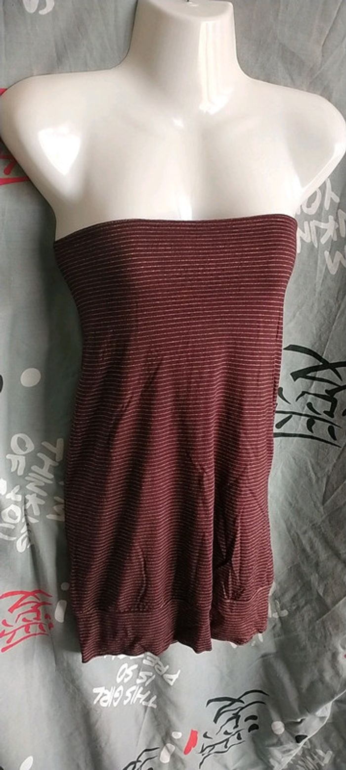 Porter une fois, impeccable. Sexy avec son grand dos nu. Couleur bordeaux avec rayures horizontales dorées.