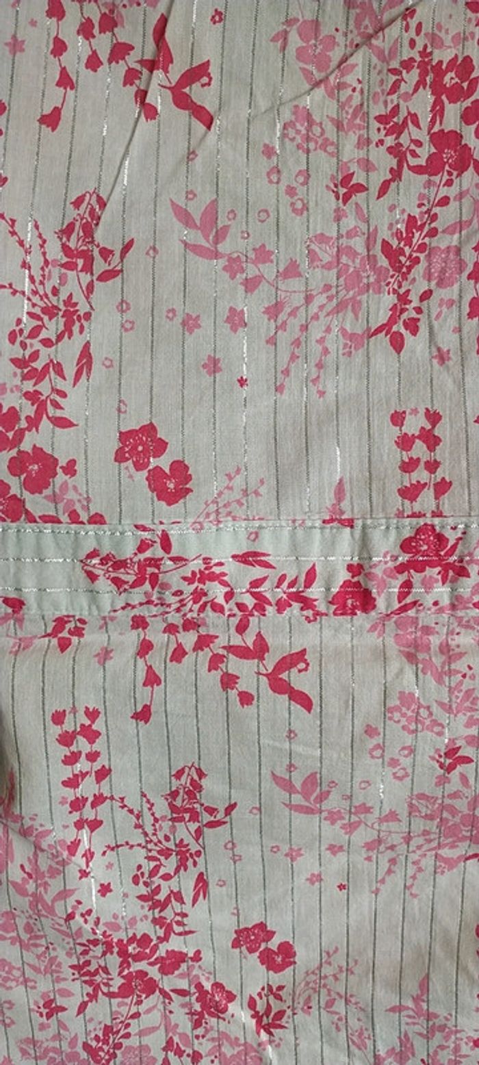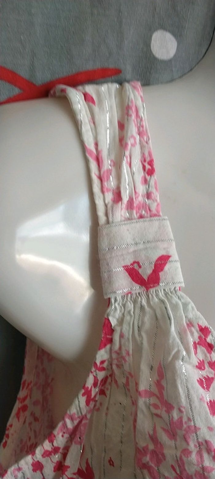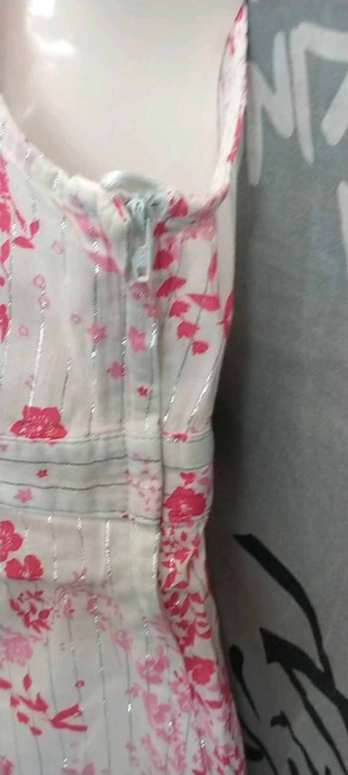 Porter une fois, exelent état. Blanc, motif à fleurs 2 tons de roses avec rayures argenté. Fermeture sur le côté pour un enfilage plus facile.