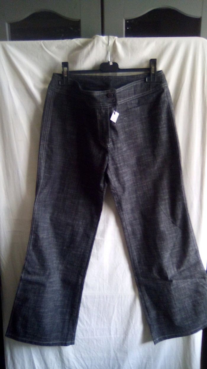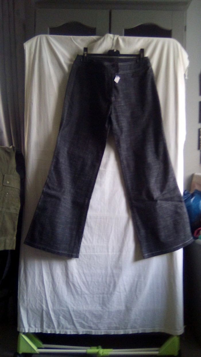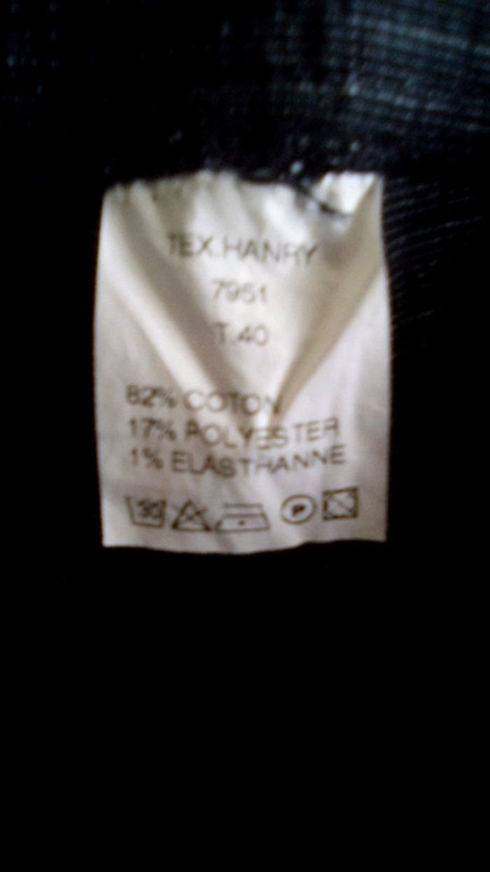 Peut porter, très bon état. 82% coton, 17% polyester et 1% élasthanne. Taille 40.
