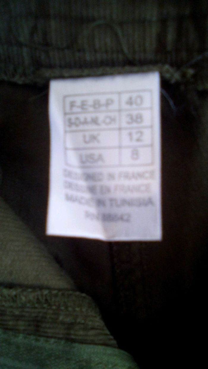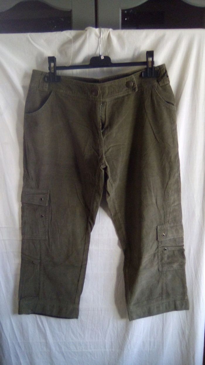 Porter, très bon état (100% coton). Sympas avec des bottes, poches. Pressions bas du pantacourt et aussi pour fermer en plus de la fermeture a la taille 40.