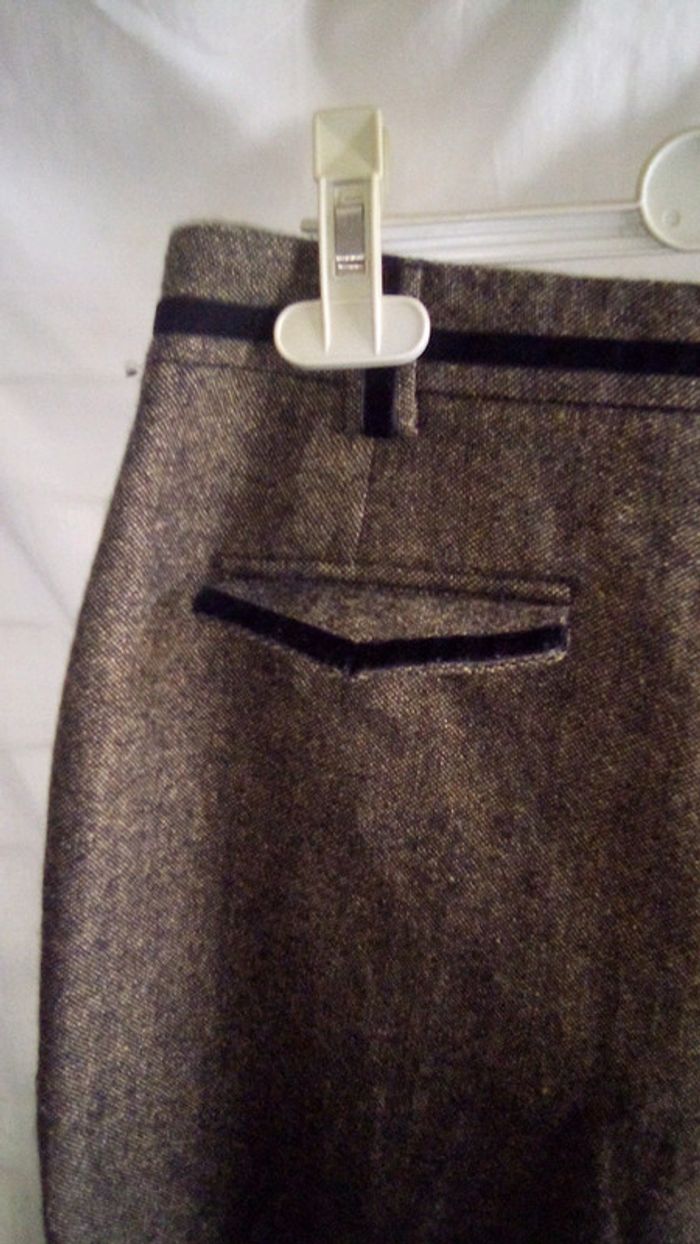 Porter une fois, impeccable. Fausses poches arrières, 2 vraies à l'avant. 60% laine, 33% viscose et 7% soie. Taille 38.