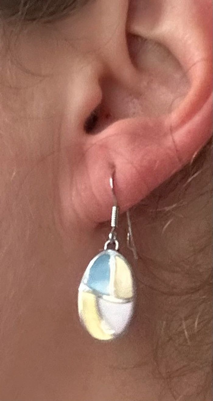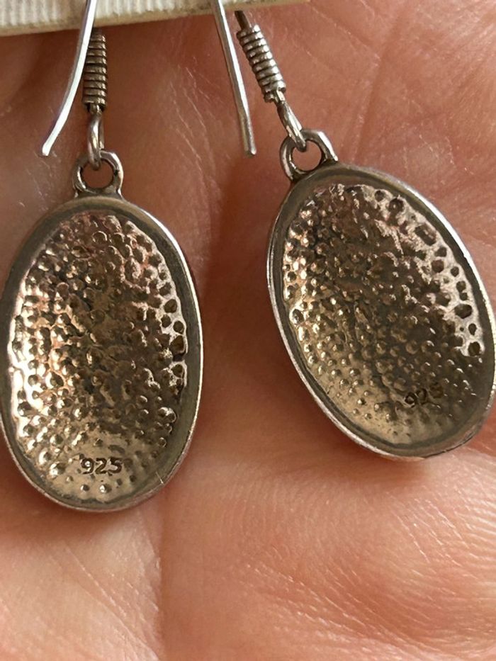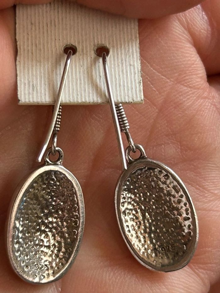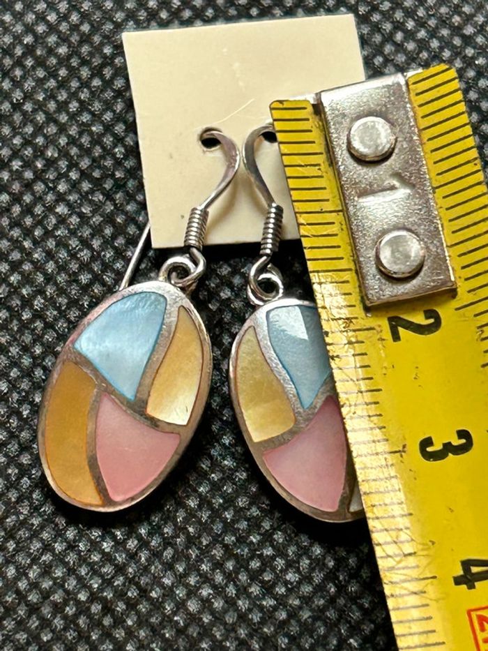 Belle paire de boucles d’oreilles pendantes ovales multicolores, en argent massif 925/1000, pour femme, neuves avec étiquette. Longueur: 3,2 cm. #merine103 #merine103bijoux