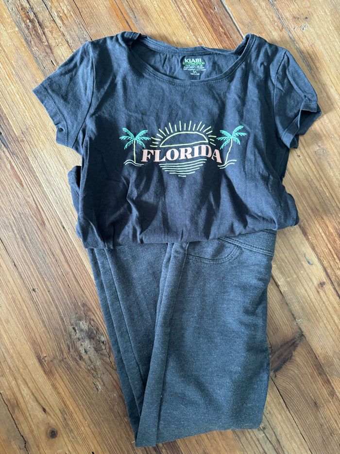 Bonjour 🤗 Vends ensemble pantalon/legging + tee-shirt en taille 5 ans, de chez Kiabi. En très bon état, juste le pantalon où l’on voit qu’il a été un peu « usé » au niveau des genoux. 🌸 #maurannejacquettaille5ans Réduction sur lot.
