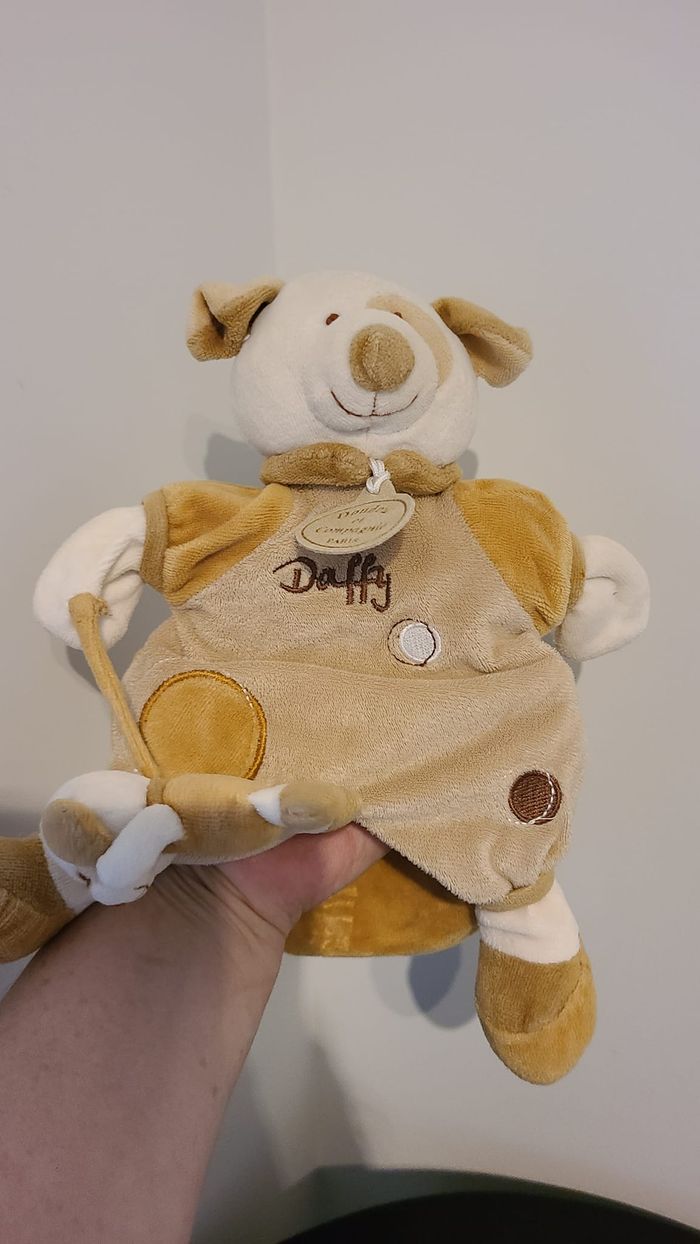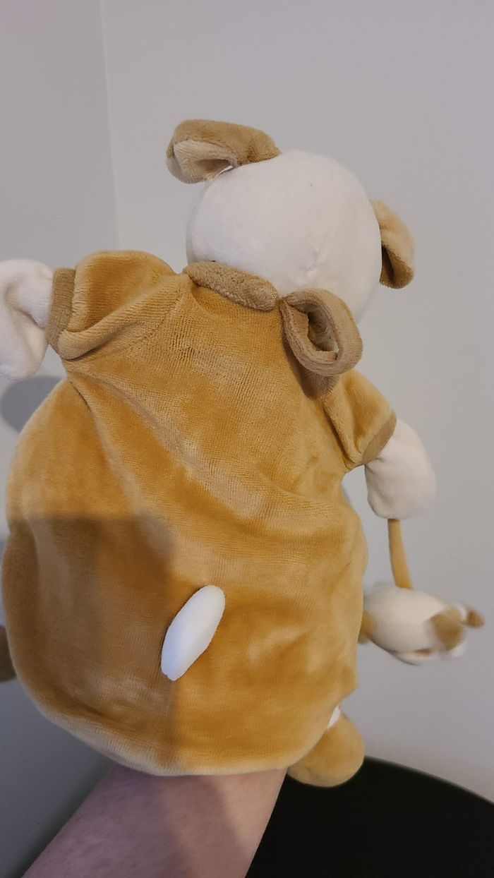 Chien DOUDOU ET COMPAGNIE marionnette beige avec bébé 136