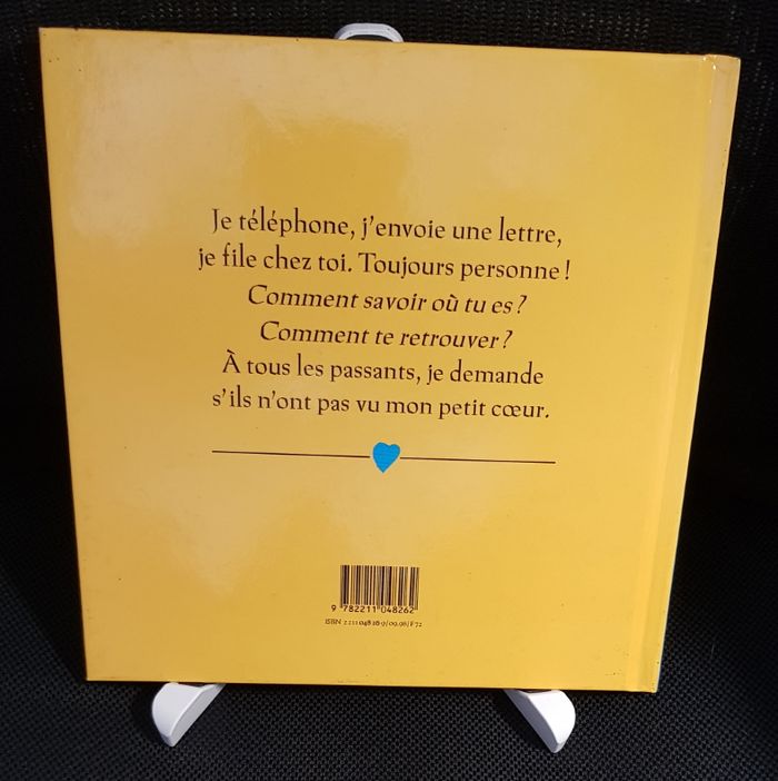 Je téléphone, j'envoie une lettre, je file chez toi. Toujours personne ! Comment savoir où tu es ? Comment te retrouver ? A tous les passants, je demande s'ils n'ont pas vu mon petit coeur. Collection Pastel. Édition cartonnée format 215x215 EAN 9782211048262 sept-98 Très Bon État, légères froissures de lectures, sans écritures. Une imposante liste de livres pour enfants disponible, essayez un premier contact :) Poids : 290 g
